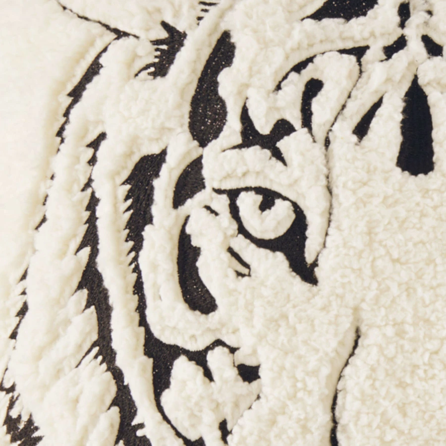 Bring out your wild side with the Betsey Johnson Betsey’s tiger black throw pillow. This all-over sherpa pillow features a black threaded tiger face with additional black corner pom poms. This ferocious pillow is the perfect accent piece for your living room or current bedding ensemble. Pillow features a cipper closure. Pillow (20″ l x 20″w)