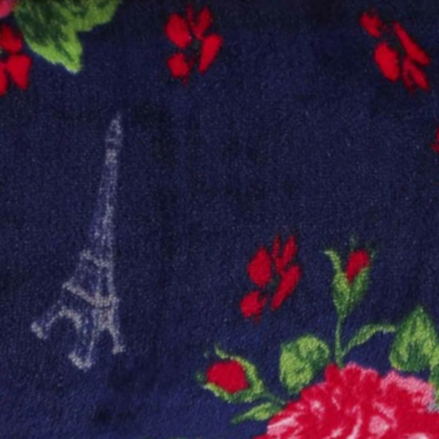- Pattern features floral design on a navy fleece ground