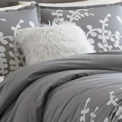 Branches Gray Bedding by City Scene surrounds you in the serenity of a pale gray sky that creates a light, airy centerpiece for your bedroom. The modern white branches reach up from the base of the comforter and spread across the sophisticated gray background to create a harmonious blend of elegance and taste. Discover your perfect retreat every time you step into your bedroom. Machine washable.