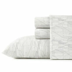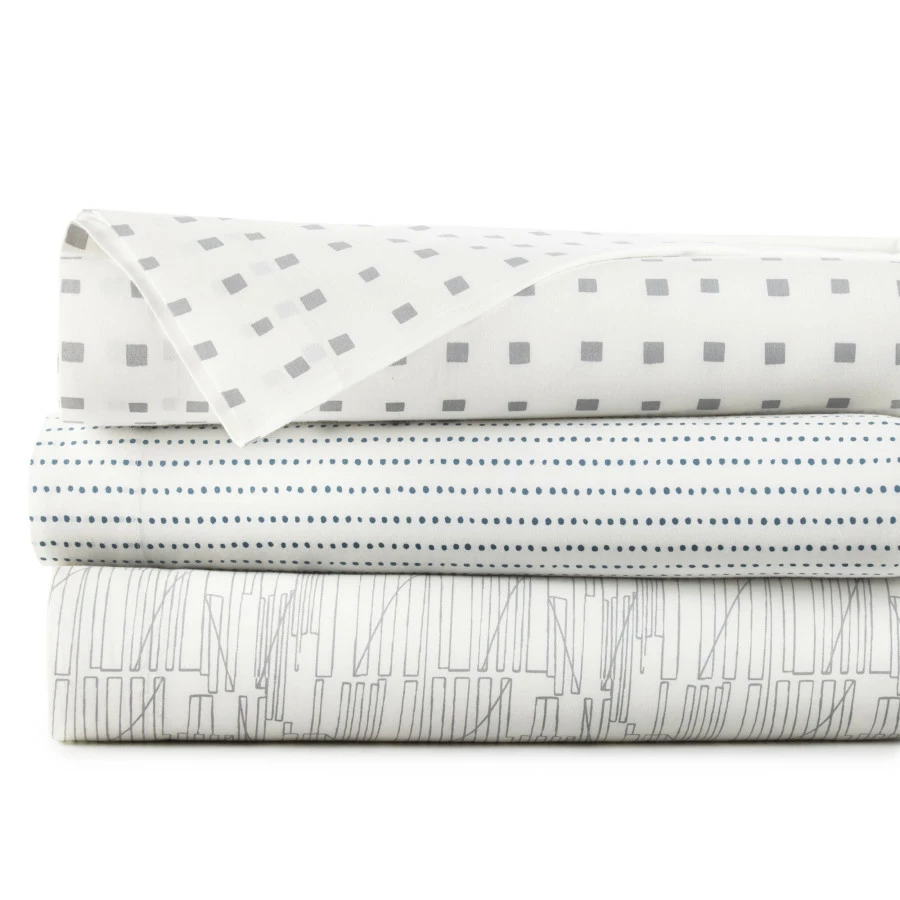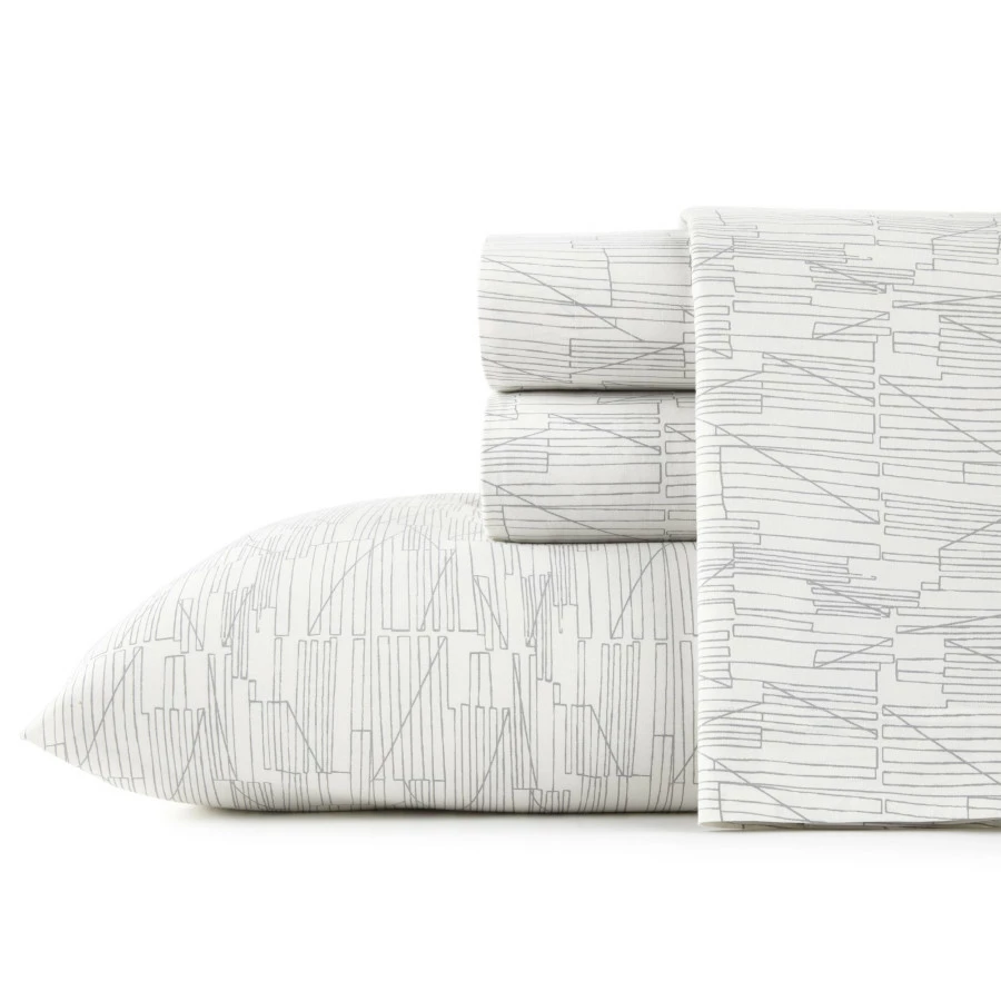 Add a new depth of dimension to your bedroom with the tally sheet set from City Scene. The gorgeous white cotton percale sheet set features intricate grey line work that is not only eye-catching, but also subtle enough to blend in with a variety of decor styles. Sheets are machine washable for easy care. The fully elasticized fitted sheet prevents slipping from the mattress and ensures a perfect fit.