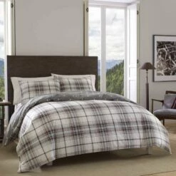 Embrace Your Outdoor Lifestyle With The Eddie Bauer Alder Plaid Duvet Set. The Duvet And Matching Shams Feature A Plaid Pattern, Combining Rich Tones Of Gray, Red, Tan, And Black To Create A Warm And Inviting Look. The Duvet Reverse Has Small White Elks Scattered Over The Charcoal Background To Add Some Versatility To Your Bedding Ensemble.