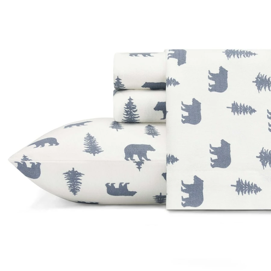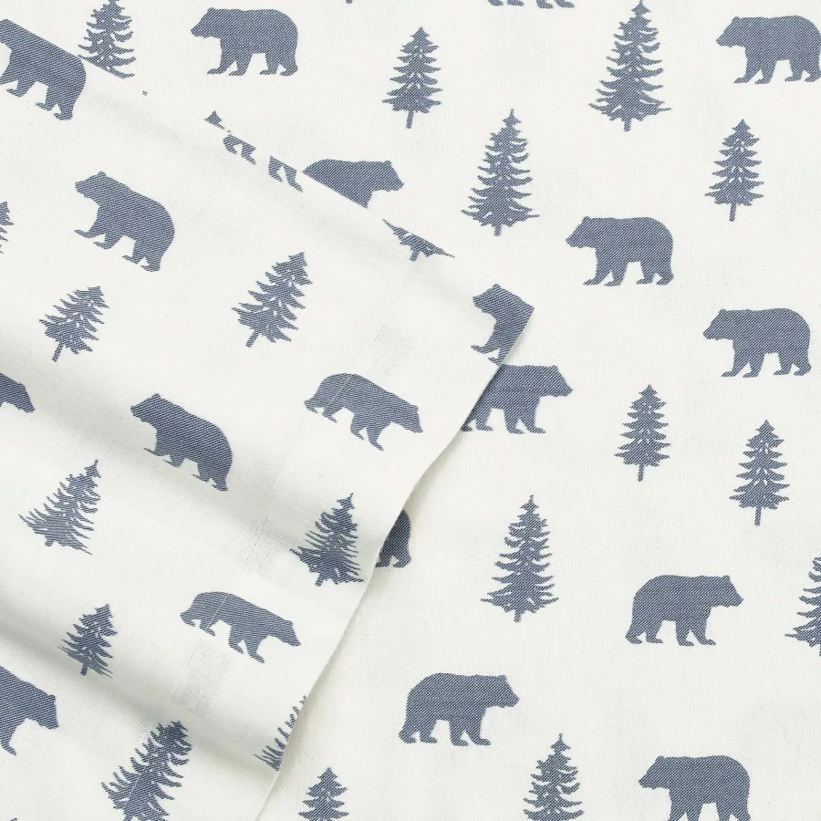 - Grey-Blue Bear And Tree Pattern Printed On White Sheets