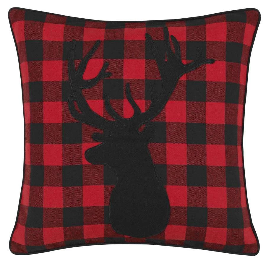 Eddie Bauer Cabin Plaid Stag Head Square Pillow Features A Large Black Silhoutte Of A Stag In The Center Of The Red And Black Plaid Background. This Bold Pillow Will Look Great On Any Couch Or Bed And Adds A Touch Of Style To Any Room. This Cotton Blend Pillow Is Soft And Easy To Care For. Machine Washable.