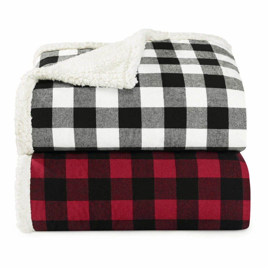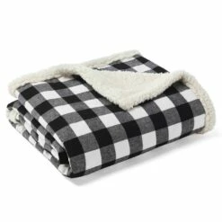 - Black And White Plaid Printed On A Throw With A White Sherpa Reverse
