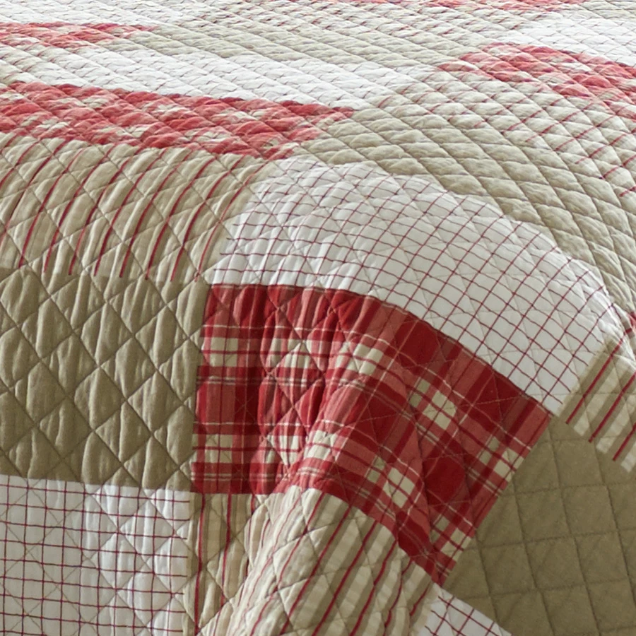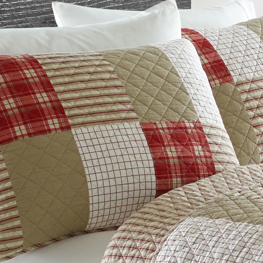 Eddie Bauer Camano Island quilt sets rustic design is inspired by the great outdoors. Patchwork sections of plaids and stripes make up the quilt and shams design. Striped reverse comliments the overall design. Soft cotton materials will ease you into a restful sleep.