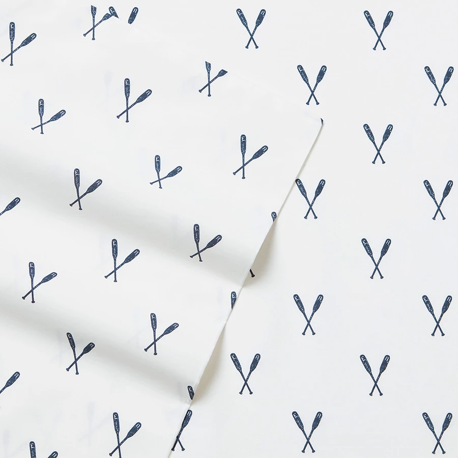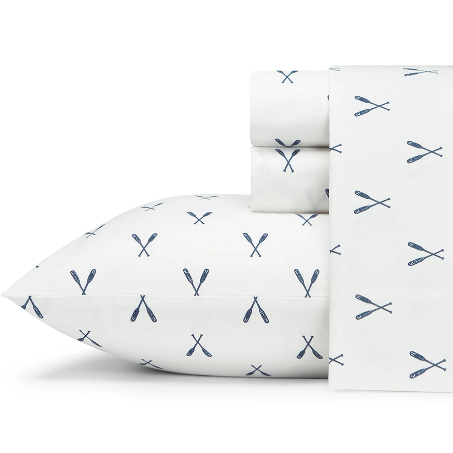 Eddie Bauer Eddies Oar sheet set offers durability and comfort. The sheet set has printed oar on a white background. Sheets are 100% percale cotton with a 200 thread count for superior softness. Combine with a new Eddie Bauer bedding set or with your existing bedding. Let the comfort of the percale cotton ease you into a restful night’s sleep.
