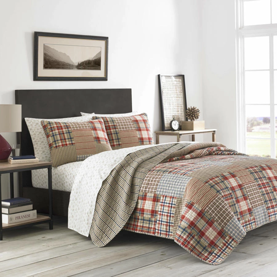 Signature Plaids And Shirting Stripes Are Pieced Together In A Rectangular Block Patchwork With A Relaxed Attitude. A Mix Of Favorite Shirting Patterns In A Rich Palette Of Indigo, Scarlet, And Saddle Has A Fresh Familiarity That Welcomes You Home. This Soft Cotton Quilt Reverses To An Indigo And Saddle Stripe Print That Complements The Colorful Patchwork Face And Trims The Edges Of The Quilt And Shams. Pre-Washed For Extra Comfort And Softness, This Quilt Set Is A Perfect Bedroom Update For Any Season.