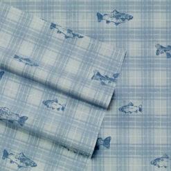 - The Eddie Bauer Methow Plaid Pattern Features A Blue Fish Motif And Light Pastel Blue Plaid Pattern On A Solid Ground