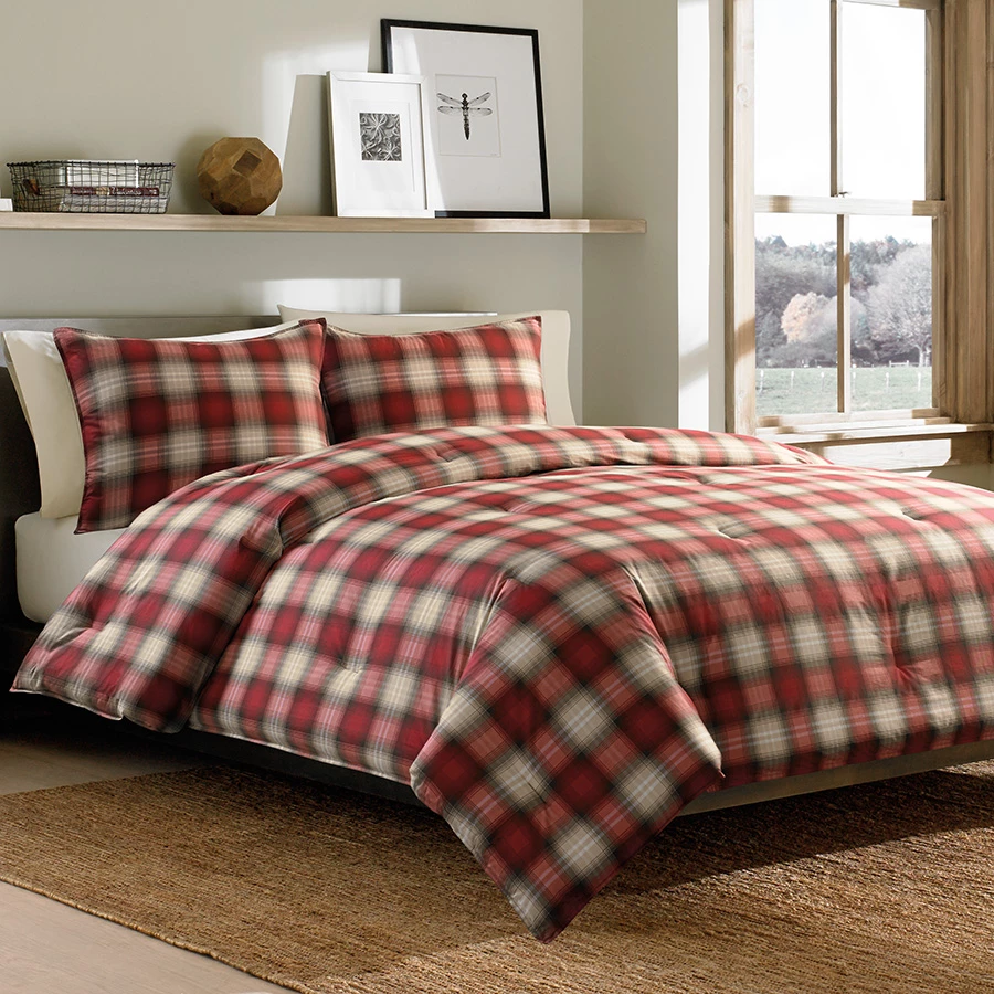 A relaxing blend of rich red and khaki make up this plaid design. Navigation Plaid comforter set from Eddie Bauer offers 100% cotton materials in a soft to the touch finish. Quality materials and printing will maintain over time. Update you bedroom with a new Eddie Bauer comforter set today.
