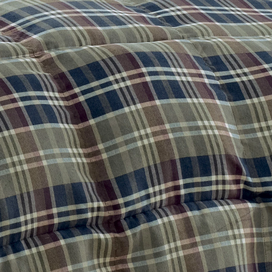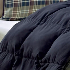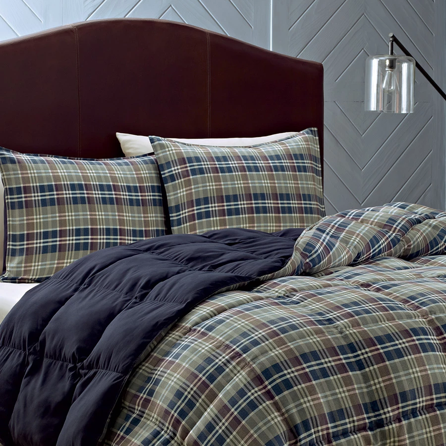 Eddie Bauer Rugged Plaid comforter set combines great style with performance. The comforter face features a navy plaid design with a large box stitch. The face uses a polyester micro suede material while the reverse uses a soft finish microfiber. Generous fill will keep you warm on cold nights. Wrap up in a new comfortable Eddie Bauer comforter set today!