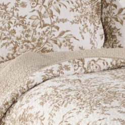 Freshen your room decor with the Laura Ashley Bedford Mocha quilt set. A mocha floral print stretches across the ivory background for a breathtakingly gorgeous print. The quilt reverse has a matching mocha background color with small white floral accents. Add Bedford to you existing bedding or on its own to add comfort and style to your bedroom.