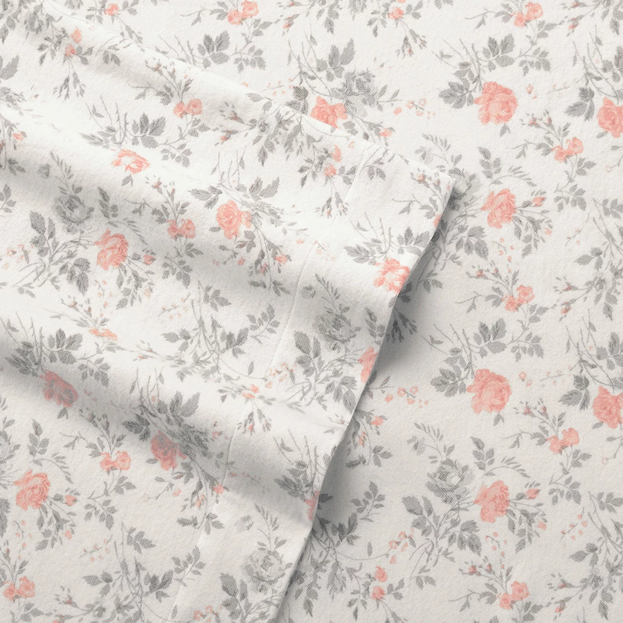 Laura Ashley Rosalie flannel sheet set offers comfort, warmth and style. Romantic and timeless, petite rose bouquets in vintage tones of dusty pink and pearl gray are scattered across a white cotton flannel background in this classic floral print from the Laura Ashley archive. Sheets are 100% brushed flannel cotton providing a superior softness. Sheets are perfect to add to your current top of bed or to combine with a new comforter or duvet set from Laura Ashley. Let the comfort of the cotton flannel ease you into a restful night’s sleep. Machine washable.