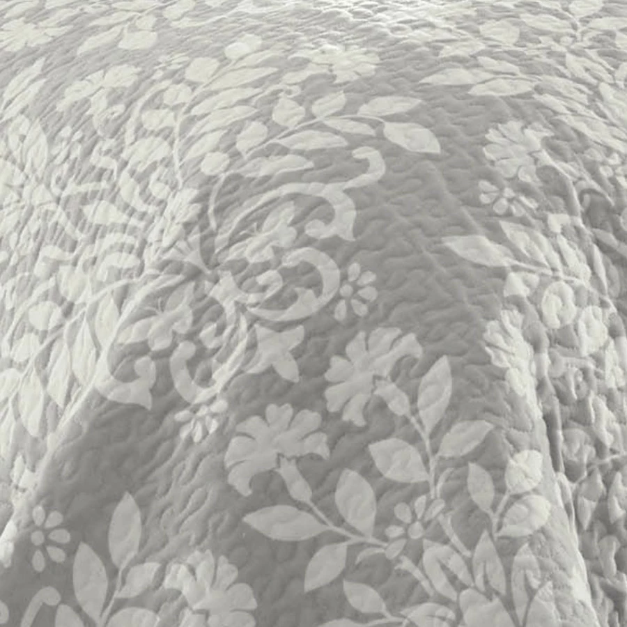- Features A White Floral Motif Printed On A Grey Quilt.
