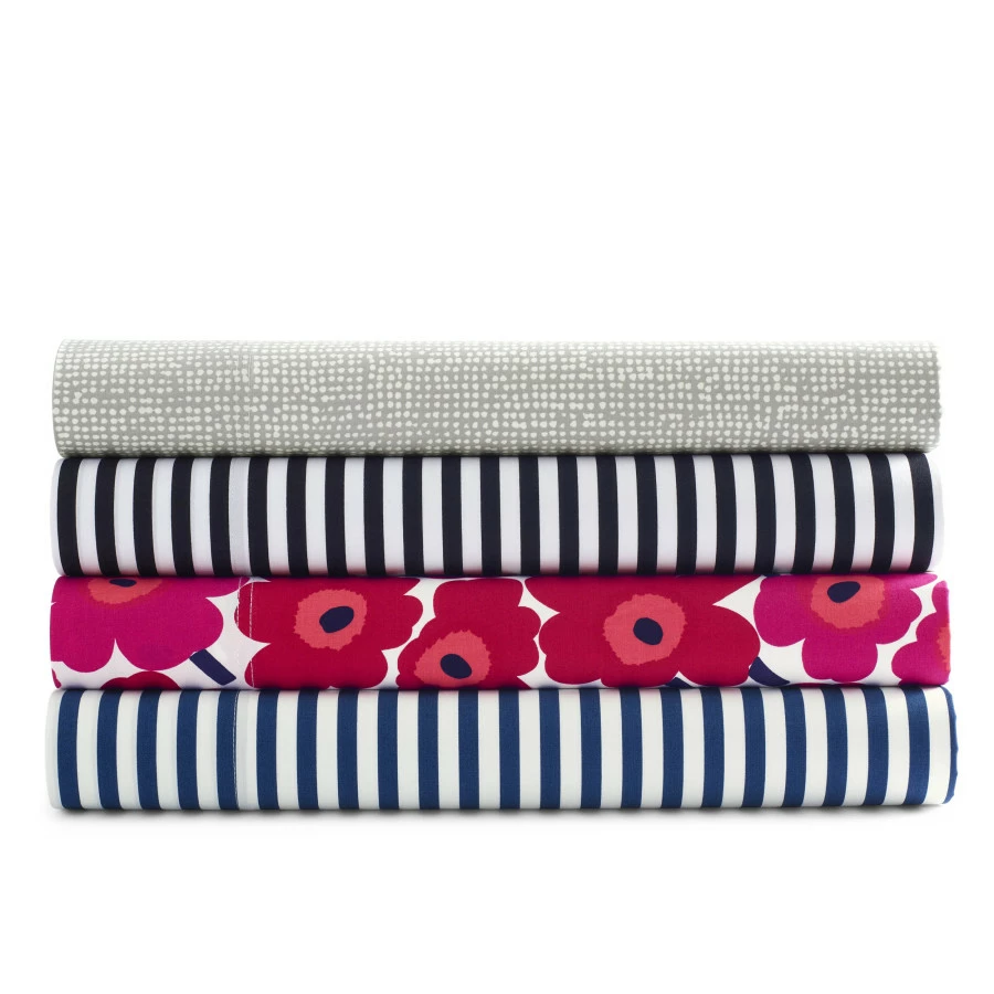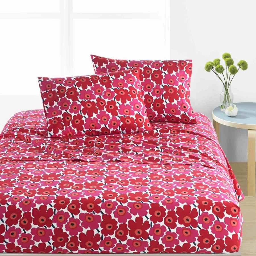 Inspired by the first floral collection designed by marimekko, the unikko sheet set pays homage to this classic poppy red pattern that makes a bold statement in your bedroom. this sheet set features a fully elasticized fitted sheet fits mattresses up to 16″ deep. Made of 100% cotton percale, this set is machine washable for easy care. Choose from available sizes to make it yours.