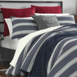 Get Ready For The Upcoming School Year With A New Bedding Collection From Nautica. The Nautical Horizontal Stripes On This Ensemble Will Perfectly Update Any Dorm Room Or Apartment. Convenient For Students Heading Back To School, The Comforter Packaging Doubles As A Bonus Laundry Bag. Duvet Cover Features Bottom Button Closures Along With Additional Inner Corner Ties. Duvet Insert Is Not Included. Included Shams Feature A Zipper Closure. Ensemble Is Machine Washable For Easy Care.