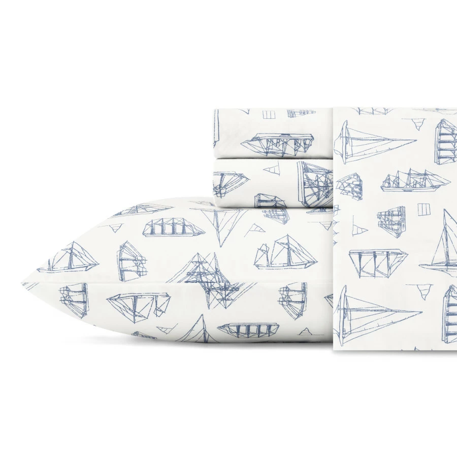 The Whitewood Sail Sheet Set By Nautica Features A Scene Of Nautical Blue Sail Boats Printed On A White Ground. This Sheet Set Is 100% Cotton Percale And Has A Cool Crisp Feel. The Sheet Set Included A Flat Sheet, Fitted Sheet And Pillow Cases. One Pillow Case Included In The Twin Size Set. The Fitted Sheet Is Fully Elastic. Easy Care- Machine Washable Set.
