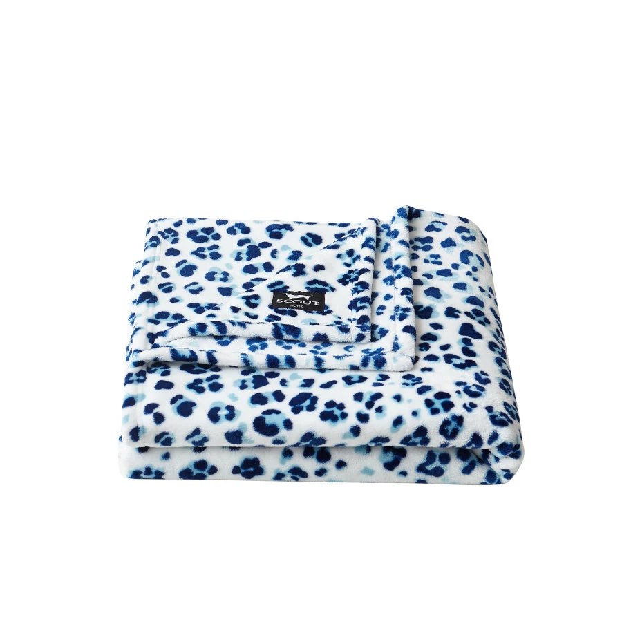 - Pattern features the Scout home city kitty throw combines soft chambray blue with navy to create a signature leopard print scattered throughout a white ground