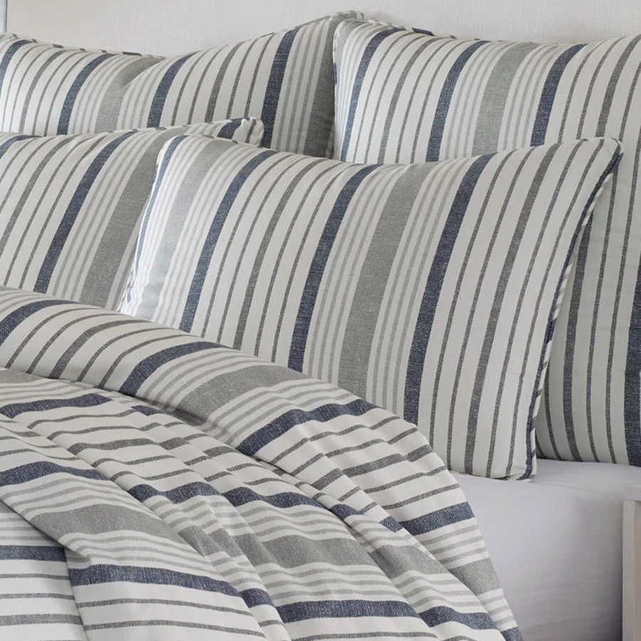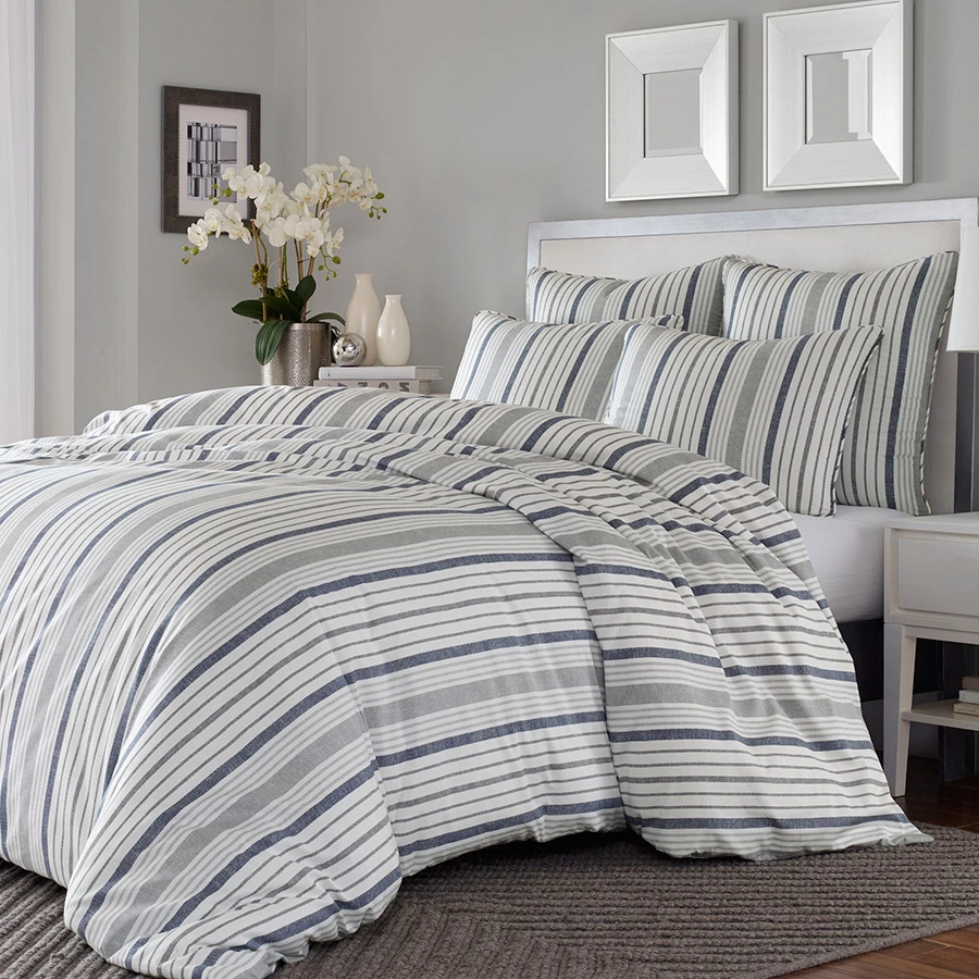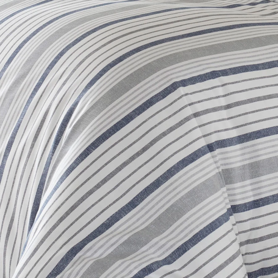 Conrad comforter & duvet set from Stone Cottage brings soft sateen cotton materials into the bedroom. This timeless and always fresh, a slate blue and gray on white shirting stripe is a simple and stylish update for any bedroom. The traditional elegance of the comforter pattern has a self reverse. Scaled up in size for bigger impact, this casual stripe offers a relaxed and inviting look that is perfect for any season. Update your bedroom with a new bedding set from Stone Cottage. Machine washable.